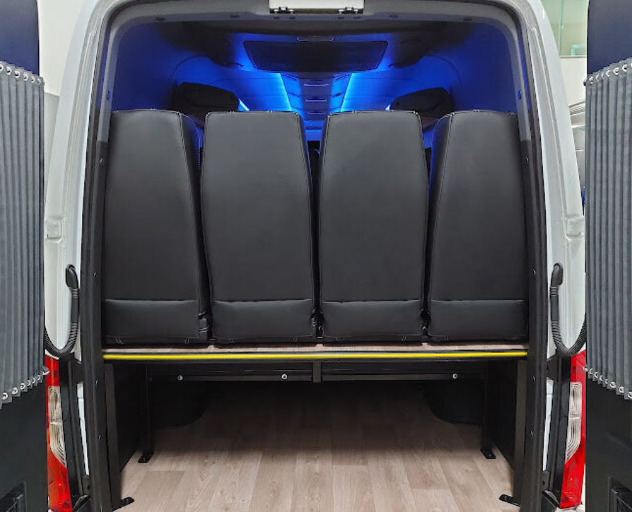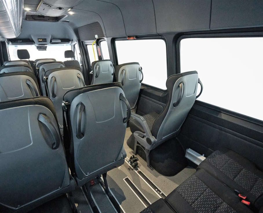 A Sprinter é a escolha perfeita para transporte ágil e confortável. Com capacidade para até 15 passageiros, oferece bancos reclináveis, ar-condicionado e amplo bagageiro. Ideal para transfers, viagens e deslocamentos urbanos, combina praticidade, segurança e comodidade para uma experiência tranquila e eficiente.